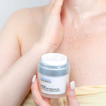 Pielea de pe gât este unică și necesită îngrijire specializată datorită structurii sale mai subțiri, a numărului mai mic de glande sebacee și a mișcării constante, fiind astfel mai vulnerabilă la îmbătrânire decât pielea feței. Cremele de față obișnuite pur și simplu nu pot oferi un tratament potrivit pentru aceste probleme specifice gâtului. De aceea, am creat o cremă specială pentru gât, care conține ingrediente puternice, concepute pentru a aborda cauzele principale ale îmbătrânirii pielii gâtului.